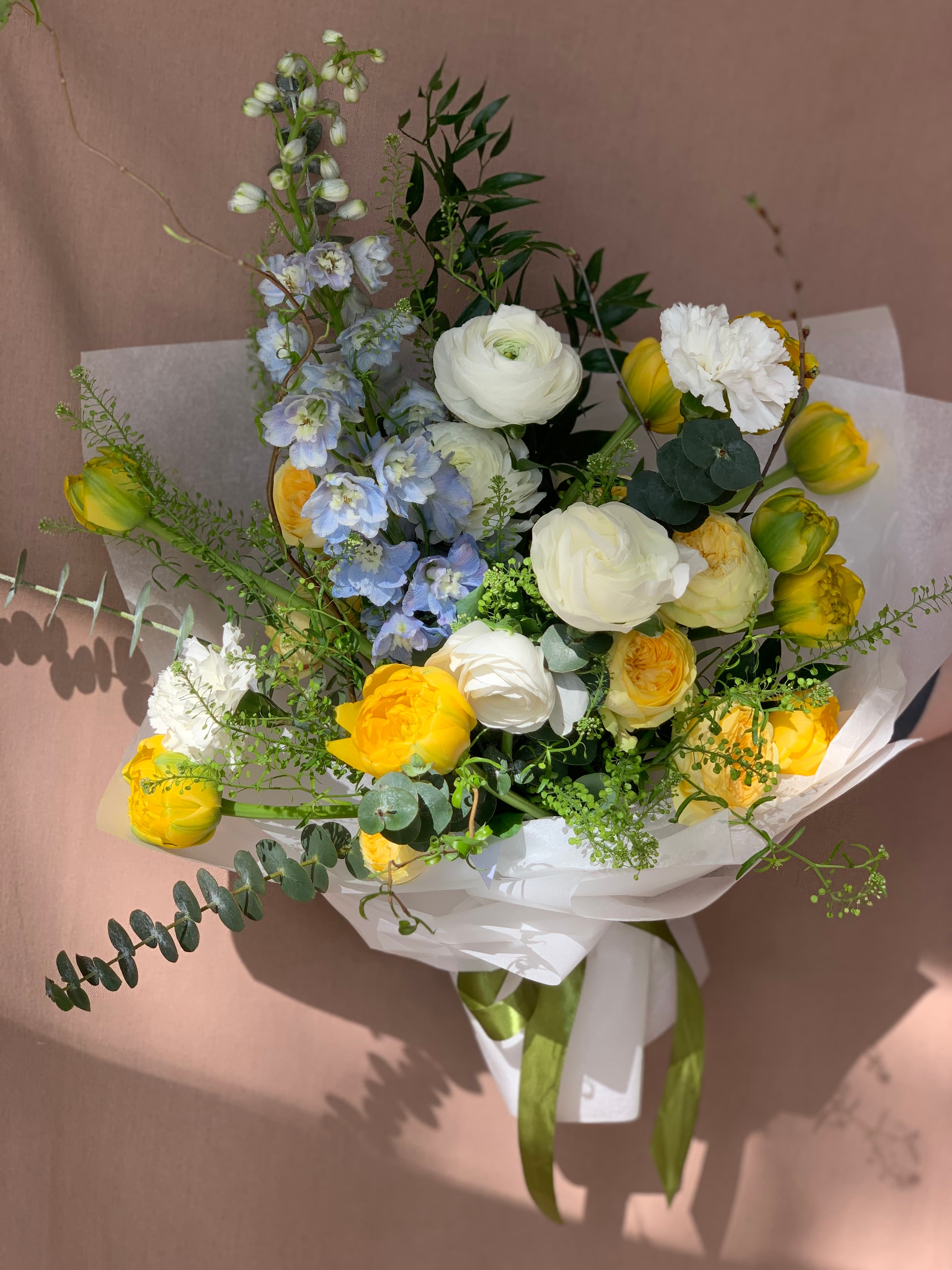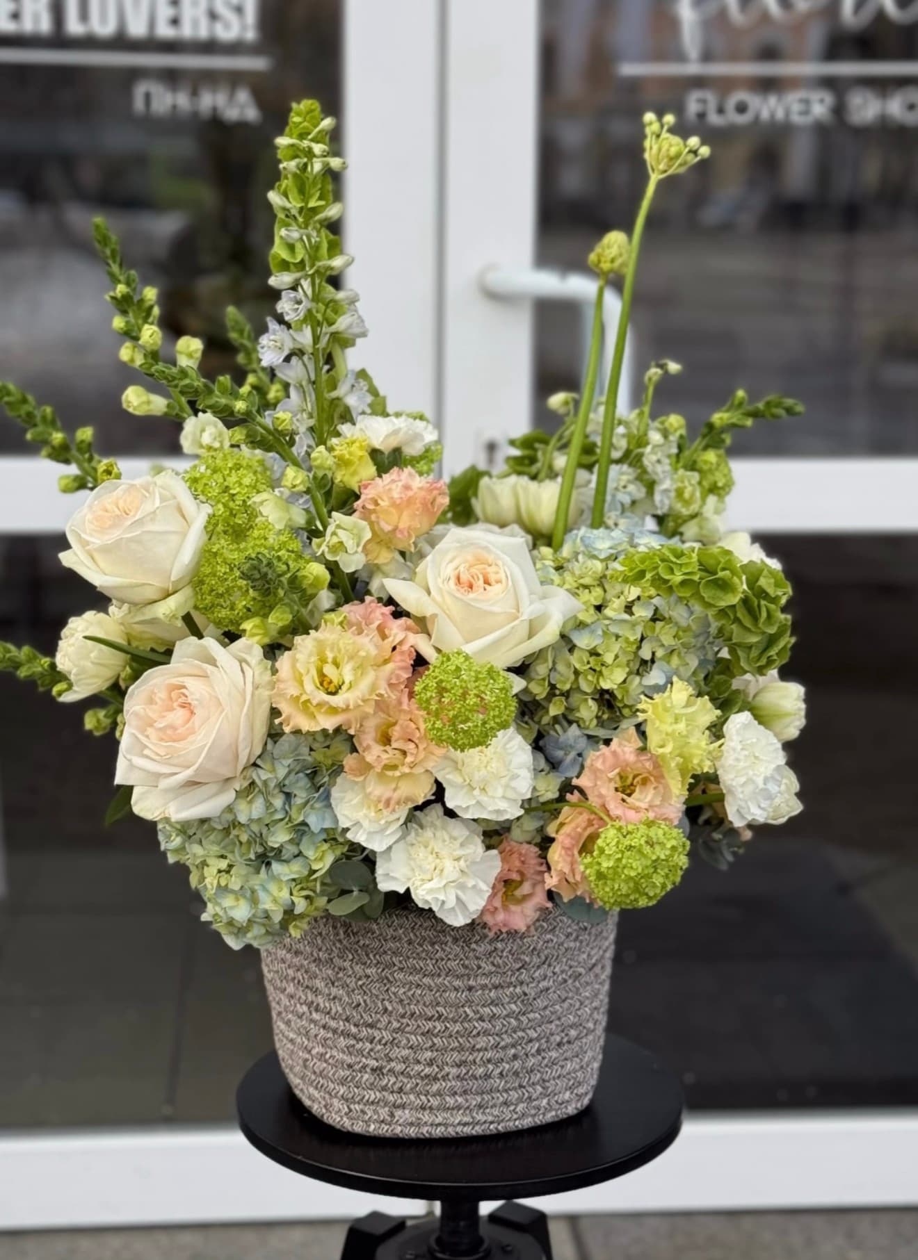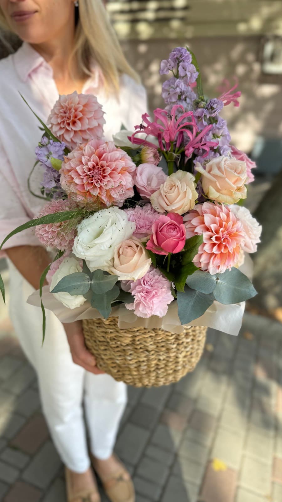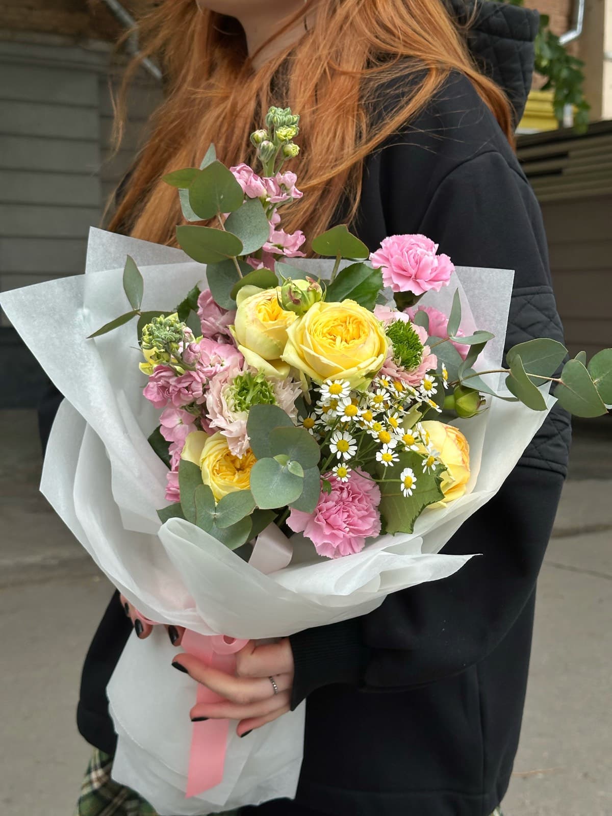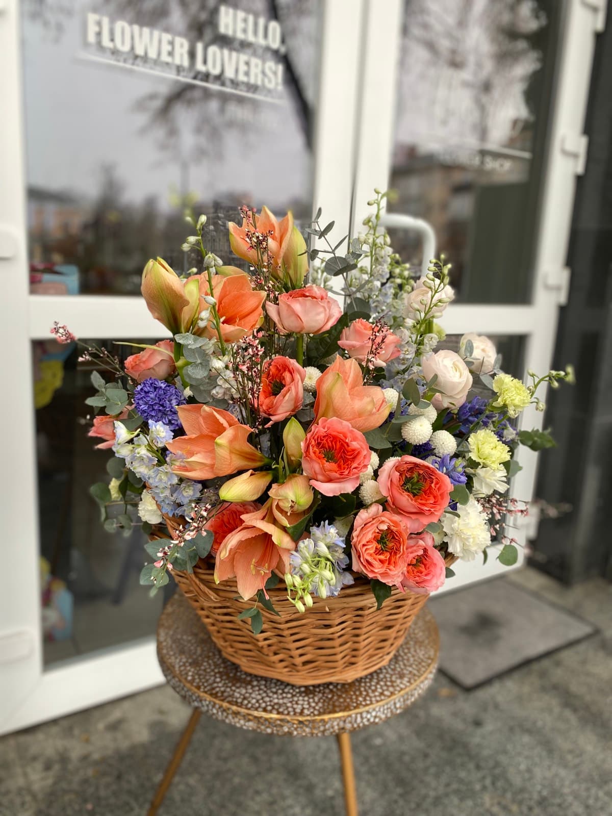 Склад квітів може варіюватися залежно від сезонності та наявності, зберігаючи обраний стиль і настрій композиції.